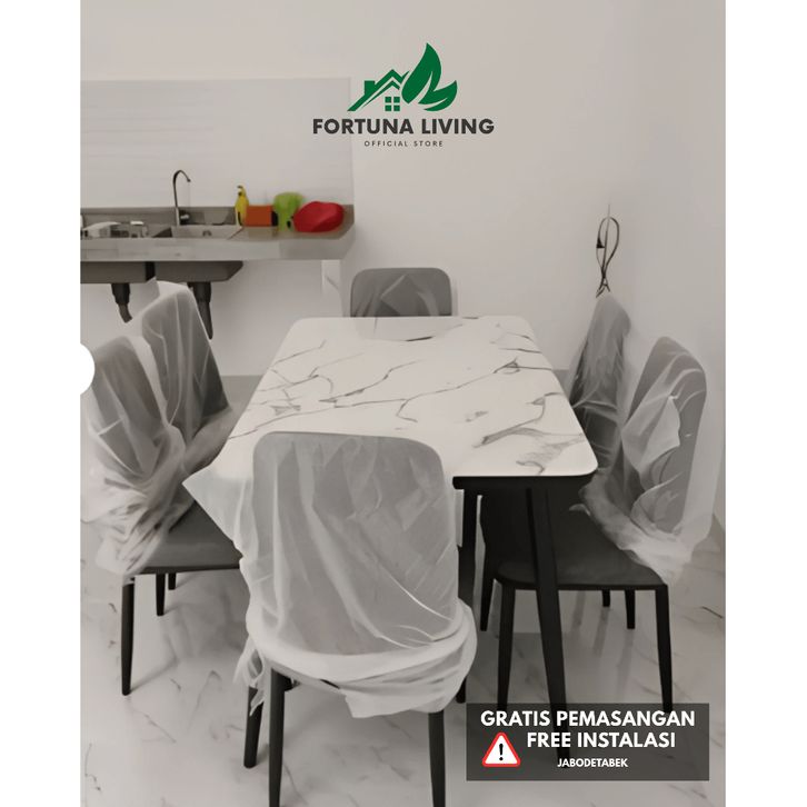 [Mall] set meja makan import meja top marmer batu neolit minimalis