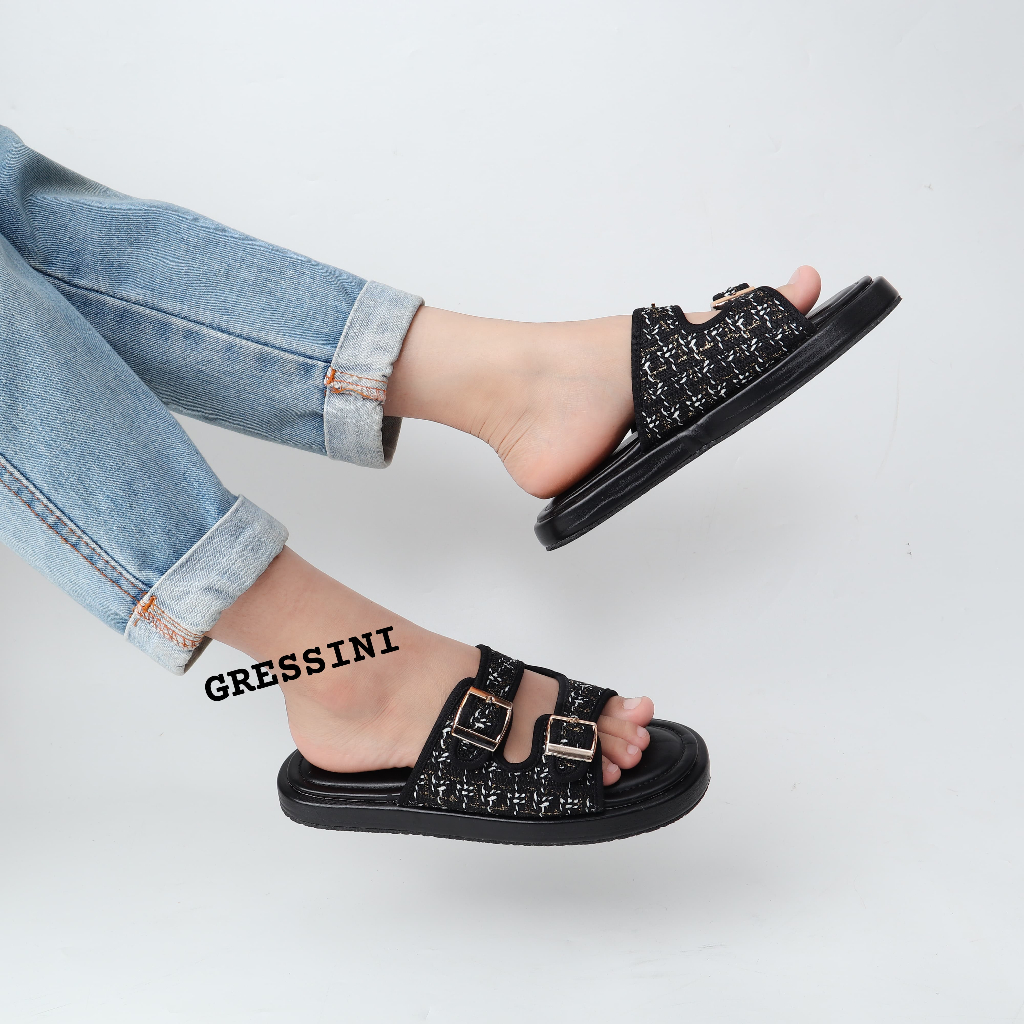 (Gratis Ongkir) Sandal Platform Wanita - Sandal Slop Gesper Wanita Kekinian