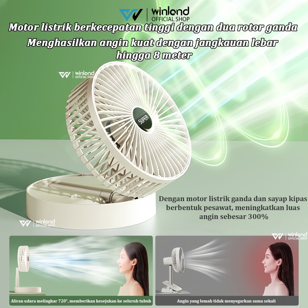 [] Winland Kipas Angin Portable Kipas Portable Tahan Lama Kipas Portable Putar Naik Dan Turun 180° Portable Bisu Usb Cas