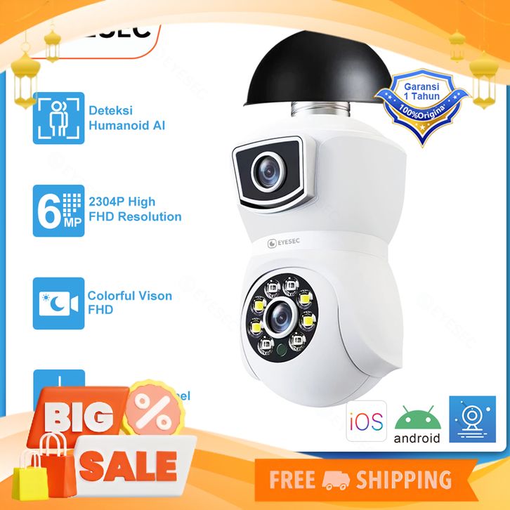 [Mall] EYESEC Lampu CCTV 8MP 2 Kamera WiFi CCTV Bolam Dual Lens IP Camera 360 Derajat Outdoor Kamera HP Jarak Jauh