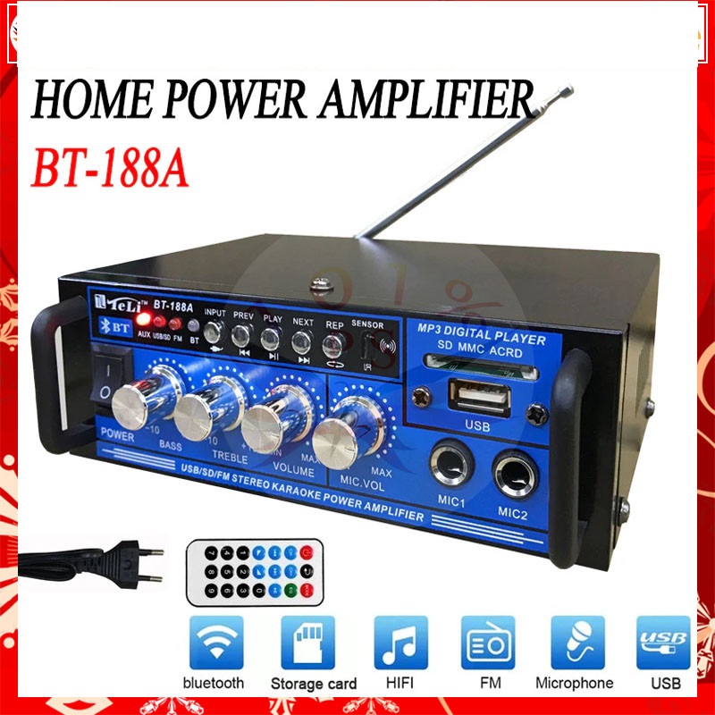 AMPLIFIER BLUETOOTH SUBWOOFER / AMPLIFIER MINI BLUETOOTH BT-188A POWER AMPLIFIER EQ AUDIO KARAOKE HOME THEATER 600W ORI