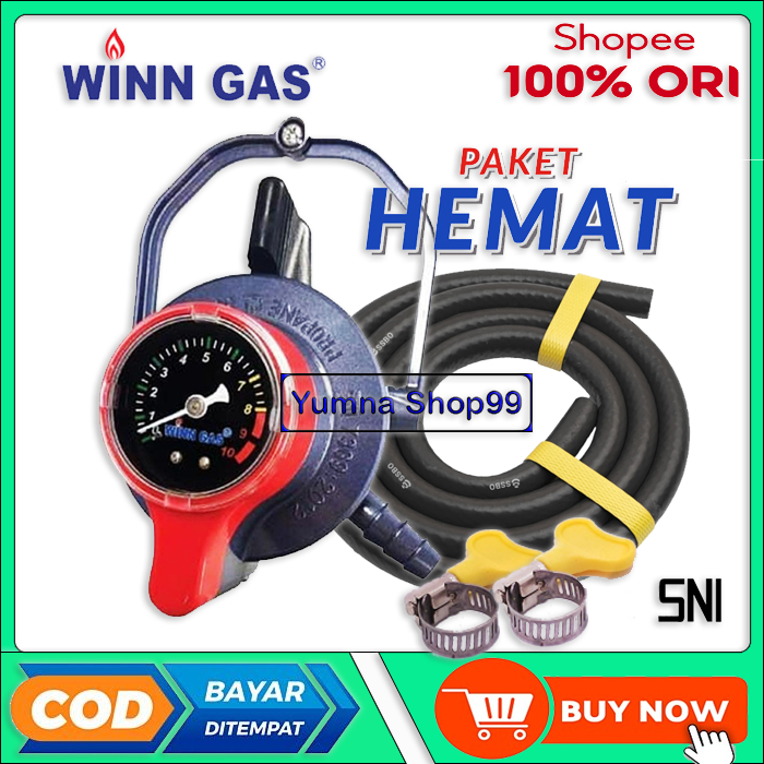 PAKET Winn Gas W-900M METER+Selang Hitam 3 Lapis 2 Meter+2 Klem Kuping / Regulator Selang Kompor Gas