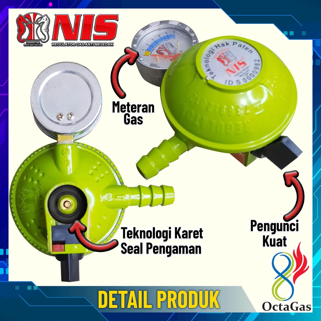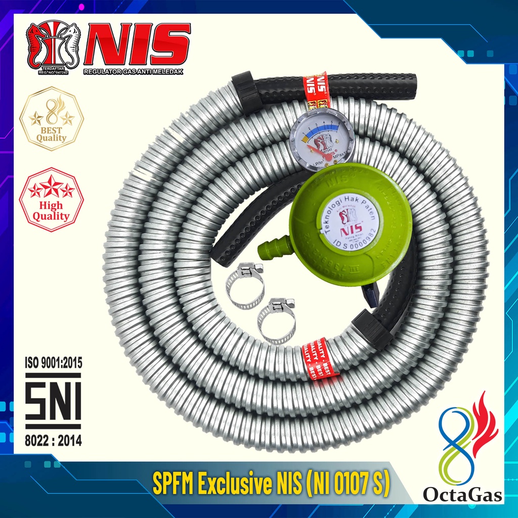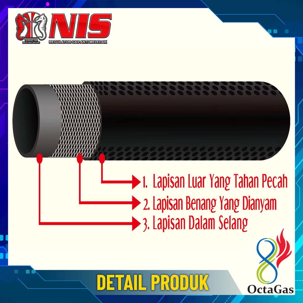Nis Paket Selang Gas + Regulator Kompor Gas Jumbo 1 Pengunci (NI 0107 S)