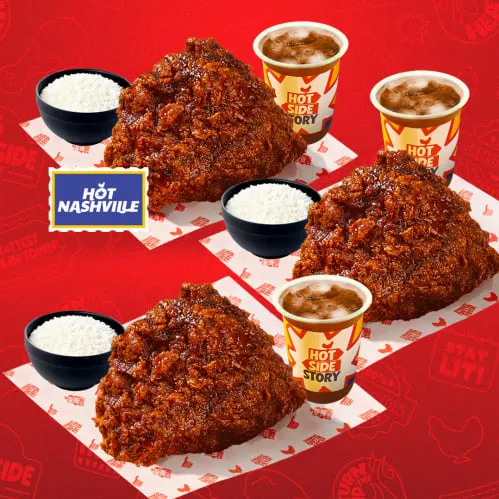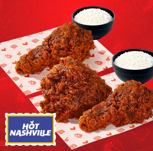 Trio Hot Nashville Combo 1, B1G1 2 Pcs (Chicago + Nashville) Rice Set, B1G1 Bundle Hot Nasvhille Meal 2 FREE Hot Nashvill, Combo 10 Wings (Nashville), Combo 10 Wings (Nashville & Chicago BBQ), Combo 20 Wings (Nashville), Combo 20 Wings (Nashville & Chicago BBQ), 2 pcs Fried Chicken Hot Nashville Meal, 2 Pcs Chicago BBQ Meal, 1 pc Nashville Fried Chicken Rice Set + Dipping Sa, 1 pc Chicago Fried Chicken Rice Set + Dipping Sauc, Hot Nashville Combo 1 Free Drink, Hot Chicago BBQ Combo 1 Free Drink, 5 pcs Nashville Chicken Wings + Dipping Sauce, B1G1 Bundle Hot Nashville Value Meal, 2 pcs Nashville Fried Chicken Rice Set with Drink, 2 Pcs Hot Nashville Fried Chicken Rice set with Dr, 1 pc Fried Chicken Chicago BBQ Value Set, 1 pc Fried Chicken Chicago BBQ Rice Set, 1 pc Fried Chicken Chicago BBQ Complete Value Set, 1 pc Fried Chicken Chicago BBQ Complete Set, 2 pcs Fried Chicken Chicago BBQ Complete Set, 3 pcs Chicken Wings Chicago BBQ Rice Set, 3 pcs Chicken Wings Chicago BBQ Complete Set, 1 Pc Hot Nashville Value Meal Set, 1 pc Fried Chicken Hot Nashville Rice Set, 1 Pc Fried Chicken Hot Nashville Complete Value Se, 1 pc Fried Chicken Hot Nashville Complete Set, 2 pcs Fried Chicken Hot Nashville Complete Set, 3 pcs Chicken Wings Hot Nashville Rice Set, 3 pcs Chicken Wings Hot Nashville Complete Set, 1 Pc Fire Mala Value Meal Set, 1 pc Fried Chicken Fire Mala Rice Set (Nasi Ayam G, 2 pcs Fried Chicken Fire Mala Rice Set, 1 Pc Fried Chicken Fire Mala Value Complete Set, 1 pc Fried Chicken Fire Mala Complete Set, 3 pcs Chicken Wings Fire Mala Rice Set, 3 pcs Chicken Wings Fire Mala Complete Set, 2 pcs Fried Chicken Fire Mala Complete Set, 2 pcs Fried Chicken Hot Nashville A La Carte, 2 pcs Fried Chicken Fire Mala A La Carte, 2 pcs Fried Chicken Chicago BBQ A La Carte, 10 pcs Chicken Wings Hot Nashville A La Carte, 10 pcs Chicken Wings Fire Mala A La Carte, 10 pcs Chicken Wings Chicago BBQ A La Carte, 5 pcs Chicken Wings Hot Nashville A La Carte, 5 pcs Chicken Wings Fire Mala A La Carte, 5 pcs Chicken Wings Chicago BBQ A La Carte, Kids Meal, Hot Nashville Chicken Burger A La Carte, Chicago BBQ Chicken Burger A La Carte, Hot Nashville Chicken Burger Complete Set, Chicago BBQ Chicken Burger Complete Set, Chicago BBQ Fried Chicken Steak Rice Bowl, Chicago BBQ Grilled Chicken on Rice, Hot Nashville Fried Chicken Steak Rice Bowl, Fire Mala Fried Chicken Steak Rice Bowl, Fire Mala Grilled Chicken on Rice, Hot Nashville Chicken Skin with Egg Rice, Fire Mala Chicken Skin with Egg Rice, Chicago BBQ Chicken Skin with Rice, 1 Pc Moon Fried Chicken Rice Set by MOON CHICKEN, UNO Combo 1, Large by UNO CHICKEN, Nasi Ayam Goreng Penyet Ketumbar by BU TUMBAR, Nasi Ayam Goreng TerSereh by AYAM GORENG TERSEREH, Nasi Ayam Goreng Mak Dura by AYAM GORENG MAK DURA, Paket Nasi Ayam Penyet BaPut, Paket Nasi Ayam Penyet Soto Koya Limau, Nasi Putih Ayam Geprek Seutuhnya by AYAM KOPLO, French Fries - Original (Kentang Goreng), French Fries - Smoked Paprika, French Fries - Cajun, Rice, Truffle Mayo Sauce, Pickle Mayo Sauce, Cheddar Cheese Sauce, Honey Mustard Sauce, Garlic Mayo Sauce, Pink Lemonade Tea, Korean Strawberry Milk, Iced Coffee Americano, Blonde Creamy Latte, Ice Cafe Latte, Ice Premium Chocolate (Es Coklat), Thai Tea, Earl Grey Milk Tea, Premium Matcha Latte (Green Tea), Ice Tea (Es Teh Tawar), Sweet Ice Tea (Es Teh Manis), Sweet Tropical, Coca Cola, Frestea Apple Lemongrass, Sprite, Fanta, Es Kopi Susu Gula Aren, FREE Upsize Blonde Creamy Latte