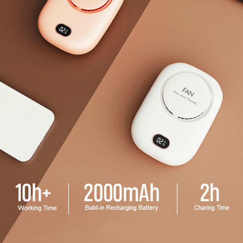 Kipas Angin Mini Portable Hanging Neck Fan 2000mAh Model Gantung Leher Rechargeable Battery Display USB