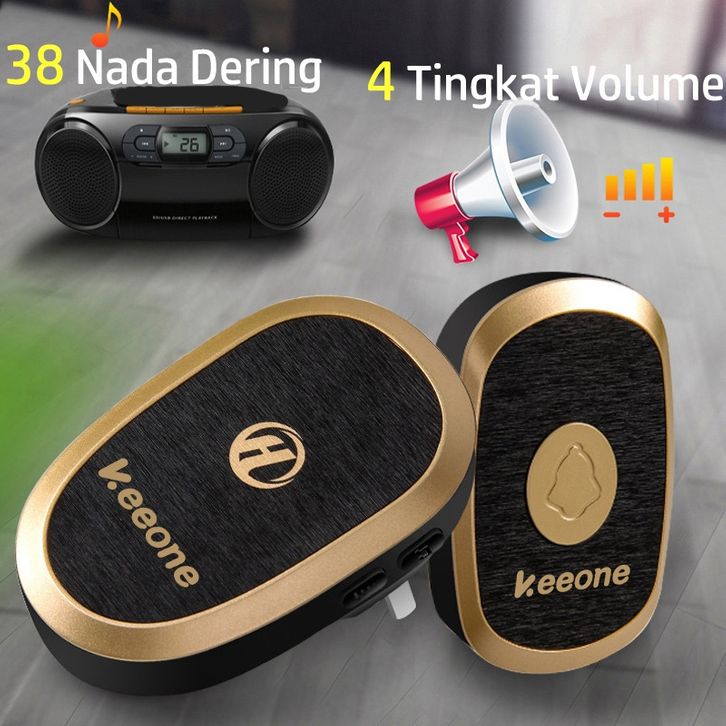 Bel Rumah Tanpa Kabel Bel Pintu Rumah Wireless Waterproof Lampu Rgb 38 Ringtone 1 Receiver