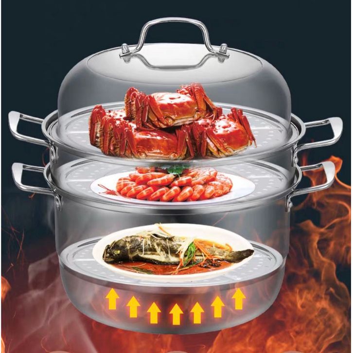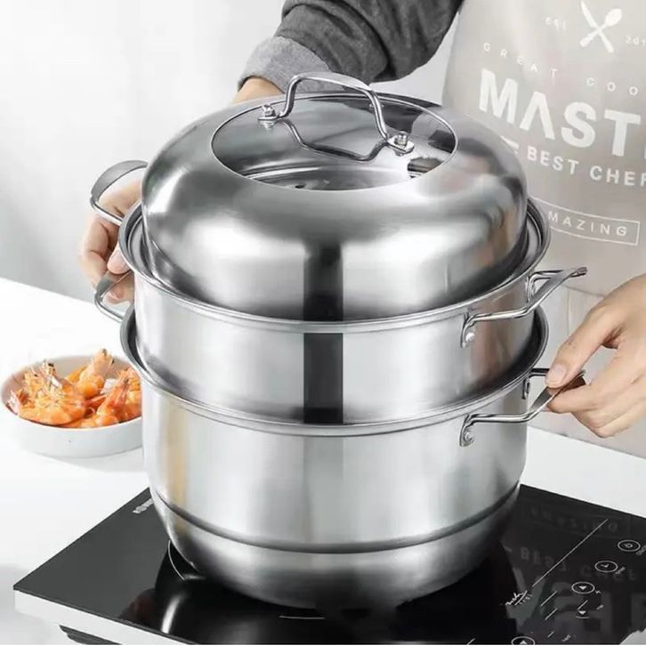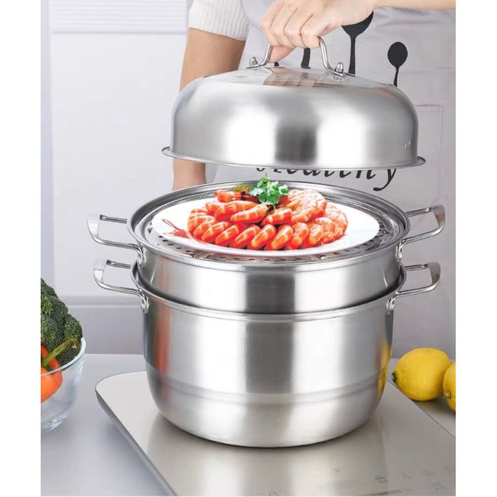Panci Kukus Siomay Dimsum Bakpao Nasi Tim Steamer Dandang Kukus Stainless Steel Susun 3 Ukuran 28cm