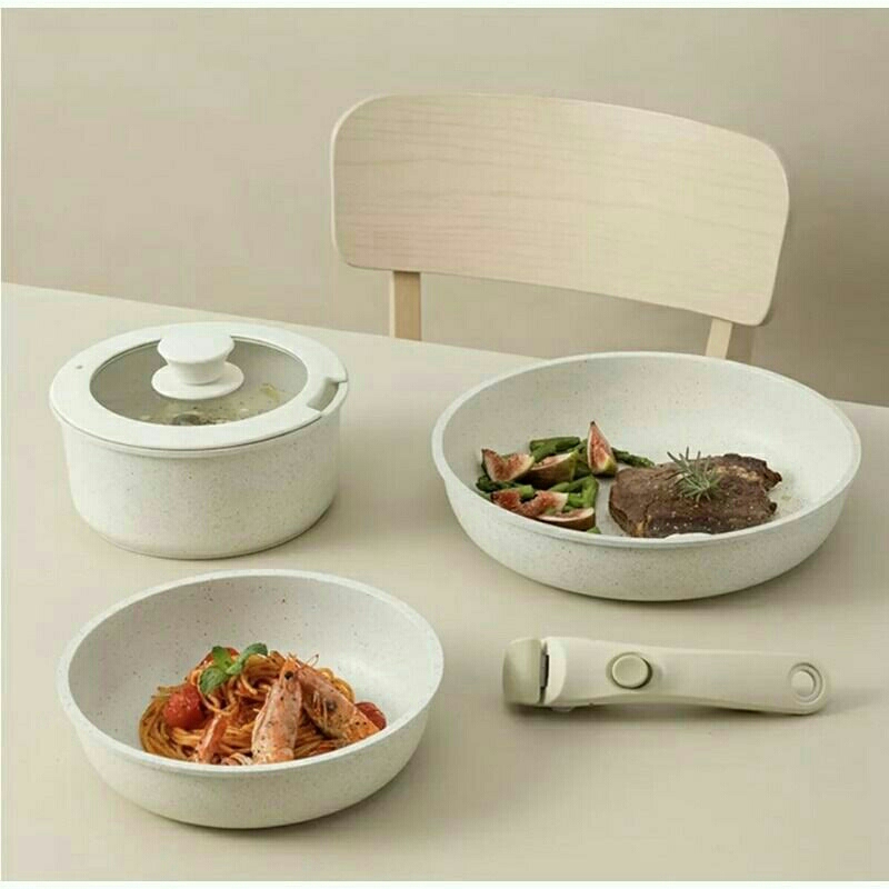 Boreine cookware set wajan, antilengket 3 pcs, gagang dapat dilepas