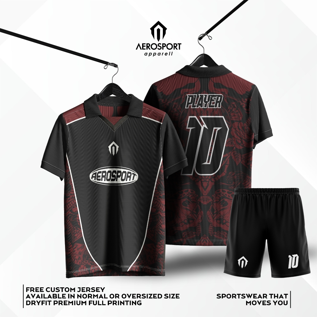 Jersey DARK ROMANCE Berkerah Setelan Futsal Full Printing Bola Aerosport Dryfit Premium Bisa Satuan