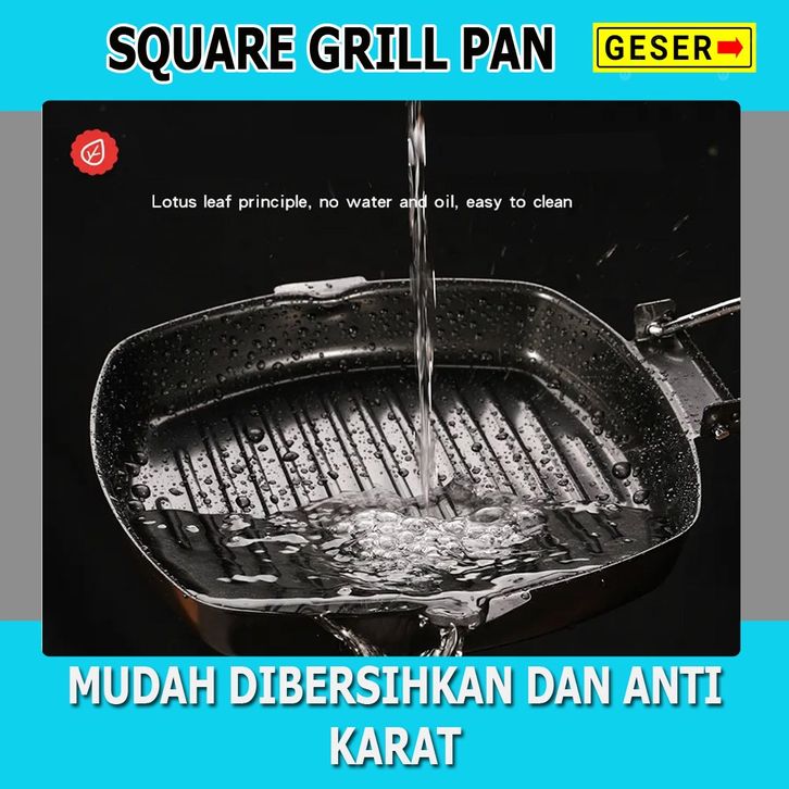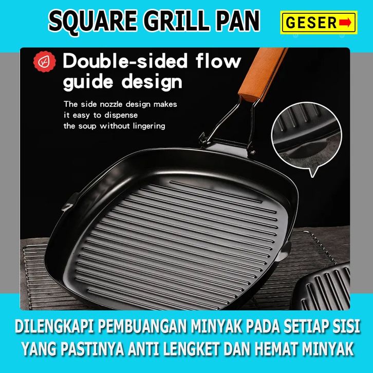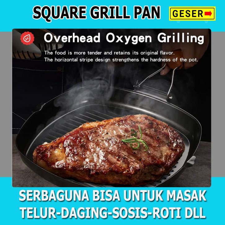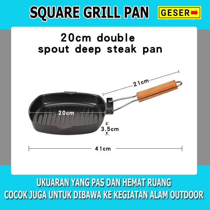 TERLARIS Wajan Panggangan Bakaran Square Grill / Pemanggang Square Grill Pan 20Cm / Alat Panggang Grill Pan