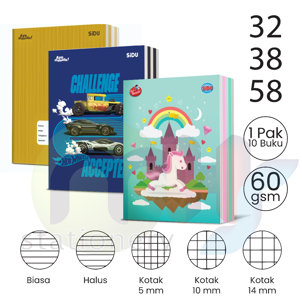 Buku Tulis 32 38 58 Lembar Sidu Skola Vision Setrimin Halus Alfabet Latin Kotak 1 Pak 10 Buku