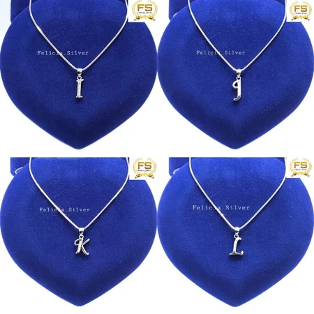 KALUNGG PERAK ASLI SILVER WANITA 925 LAPIS EMS PUTIH MODEL HURUF LATIN ALFABET INISIAL - KALUNGG ANTI KARAT - PERHIASAN