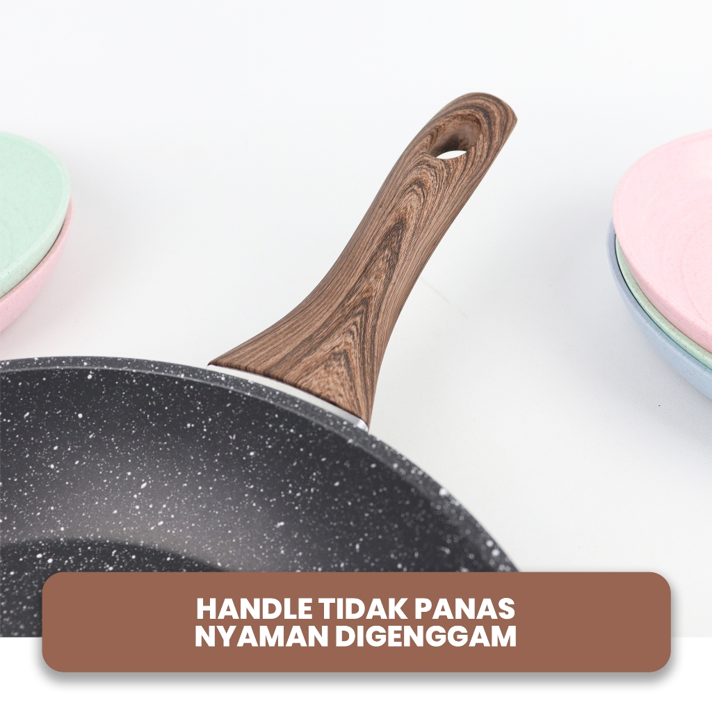 Peralatan Masak Set Granit Anti Lengket Gagang Kayu+Tutup Kaca Cocok Untuk Semua Kompor