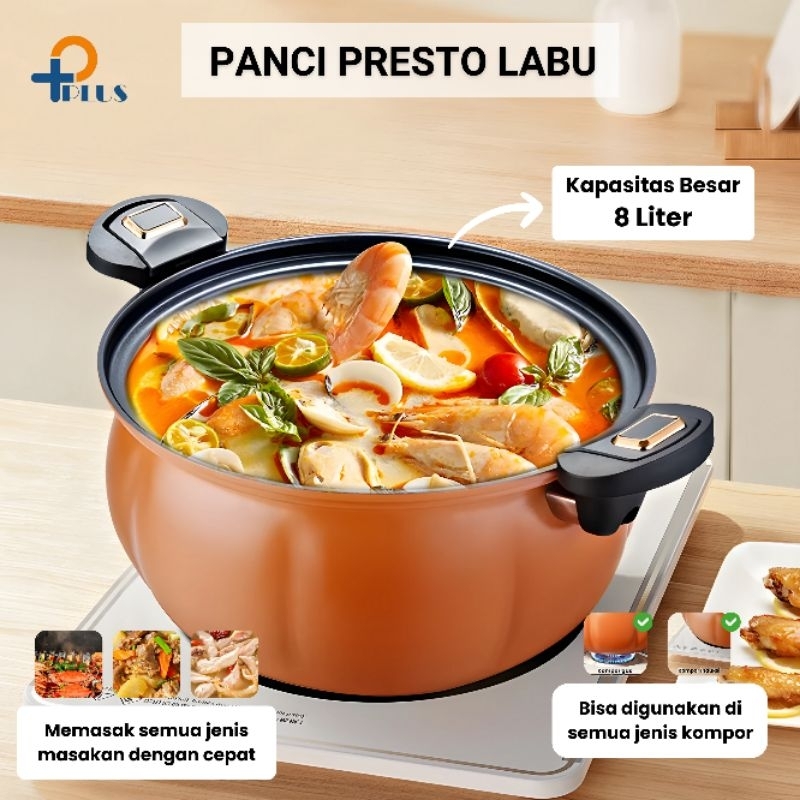 [ Pplus ] Panci Presto Labu 8 Liter & 3.5 Liter Premium Quality Wajan Panci Presto Anti Lengket Coating Batu