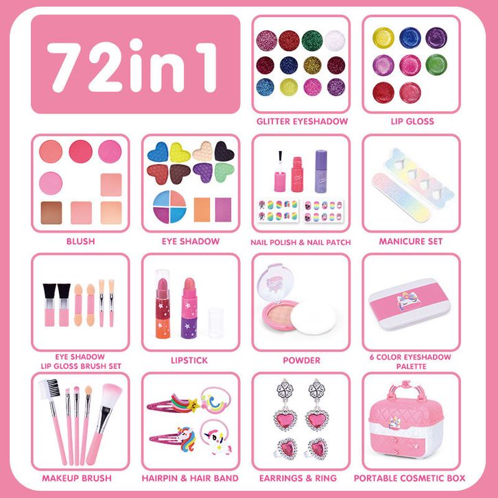 72 IN 1 Mainan Kosmetik Kecantikan Anak Kasus Peralatan Kotak Make Up Set untuk Gadis Ulang Tahun Hadiah Set Riasan Mai