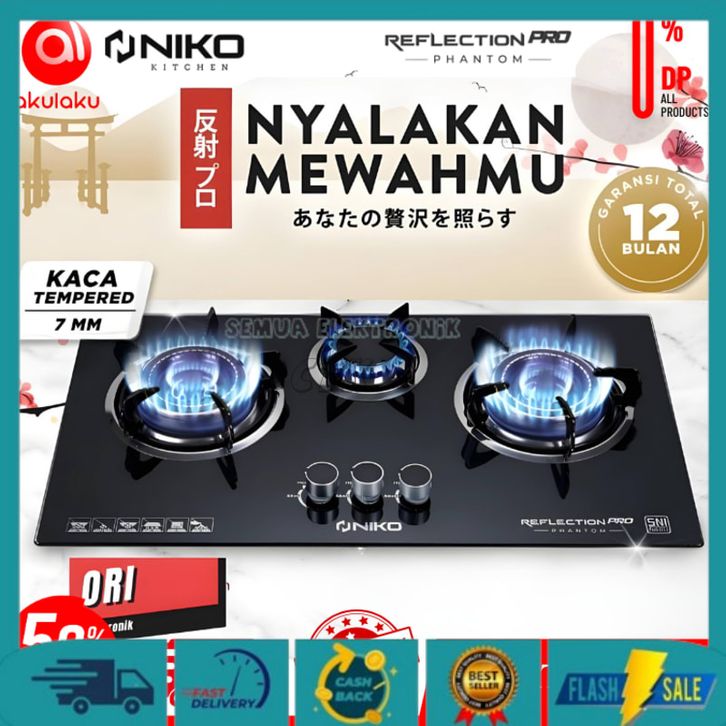 KOMPOR GAS TANAM NIKO 3 TUNGKU KACA MEWAH REFLECTION PRO PHANTOM WELHOME LAGECY ORIGINAL GRATIS ONGKIR