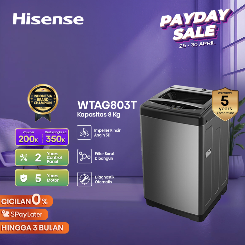 Hisense Mesin Cuci 1 Tabung Top Loading 8KG Washing Machine WTAG803T Garansi 2 tahun【Glass lid】【10 Precision Water Level