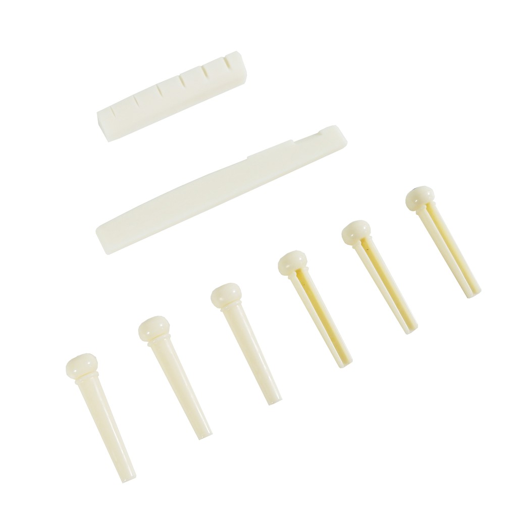 Nut + Saddle Bridge + Pin (6 Pcs) Tulang Sapi Gitar Akustik Putih