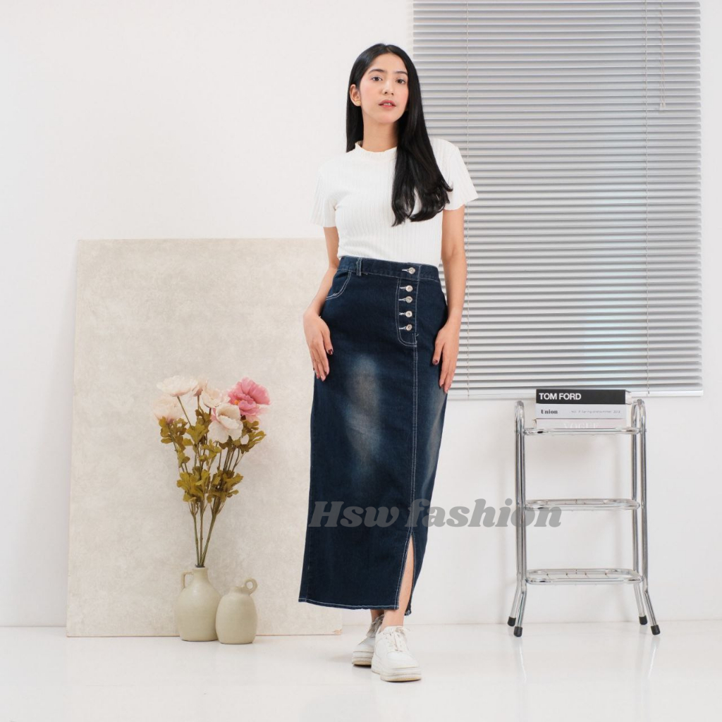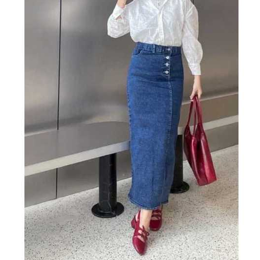 Rok Jeans Wanita Kekinina Haigh waist Belah Samping Korean Style Rok A-Line Panjang