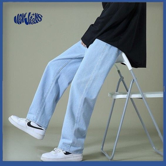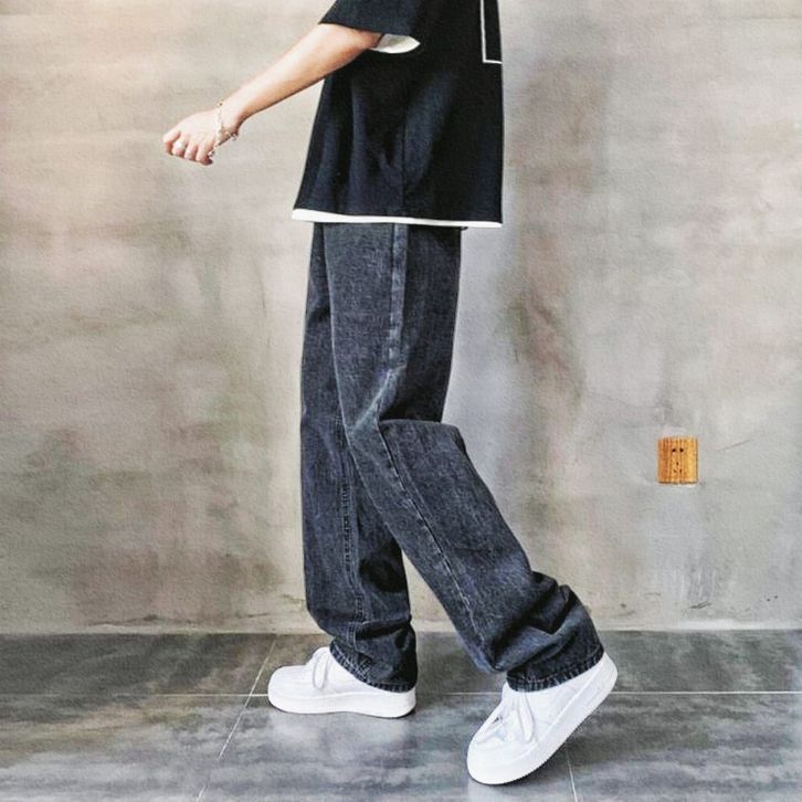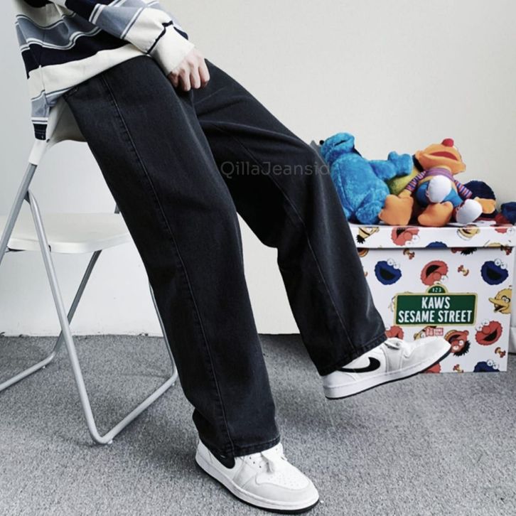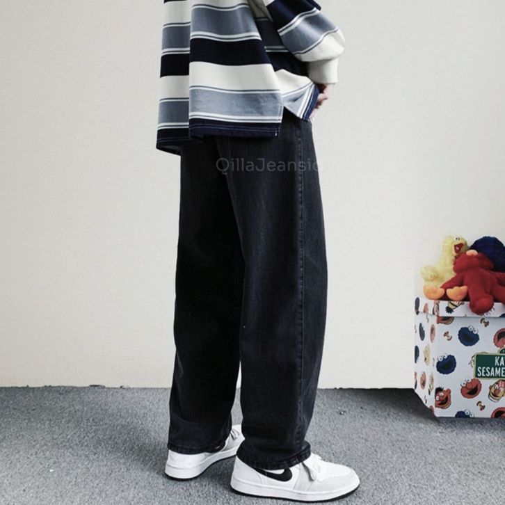 Celana Jeans Pria Baggy Pants Korean Style Oversize Loose Blue Jeans Straight Kulot Boyfriend