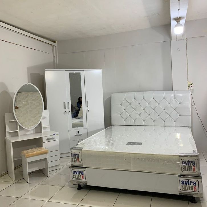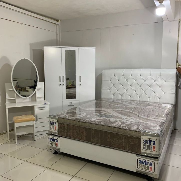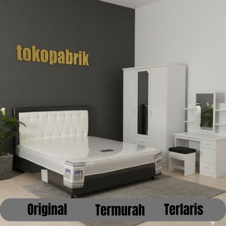 ZK Set kamar tidur ekonomis: divan, kasur springbed, lemari, dan meja rias, cocok untuk paket lamaran dan seserahan