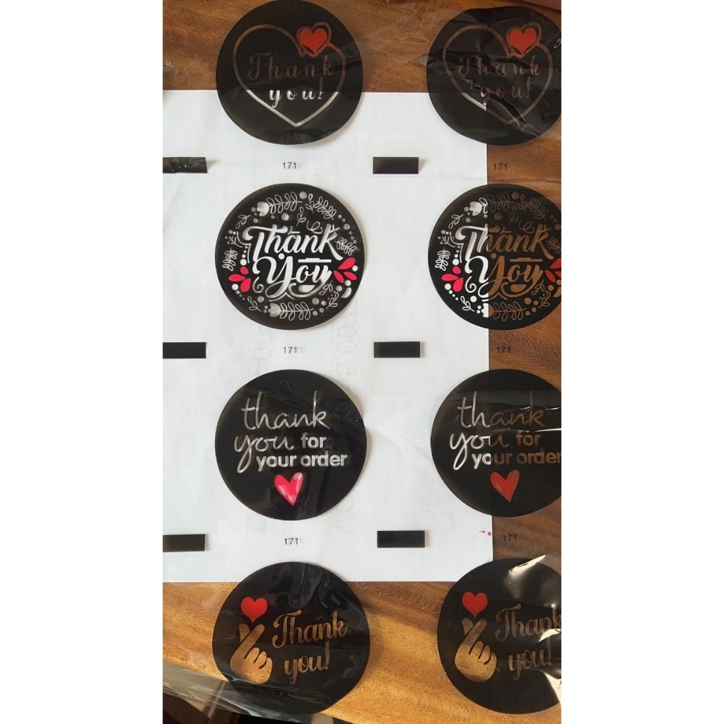 Isi:12roll Seal Cup Sealer Polos Buah Daun Teh Kartun Drink 4in1 Korea THANK YOU HITAM 1 DUS