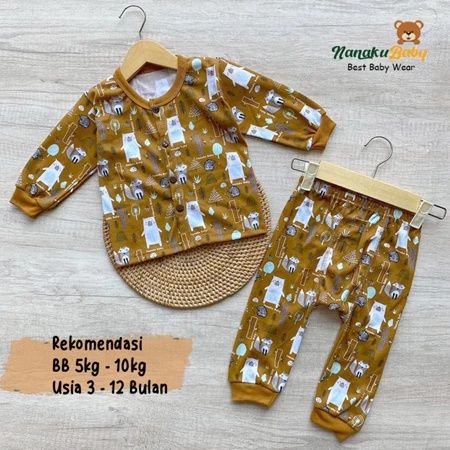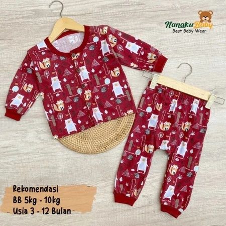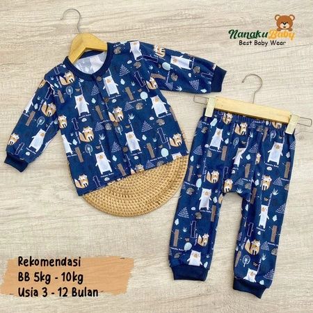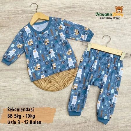 Set Piyama Bayi Panjang Kancing Depan Motif Printing Pohon Landak Usia 3-12 Bulan