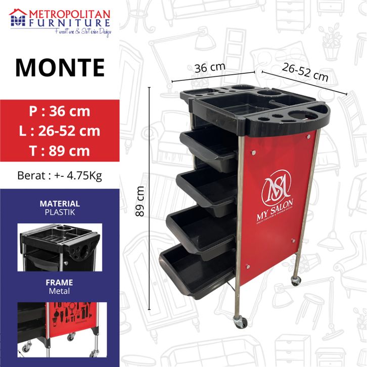Rak Salon Facial / Troli Barbershop Plastik 3 Susun – Rak Serbaguna dengan Roda Dorong Kokoh & Awet