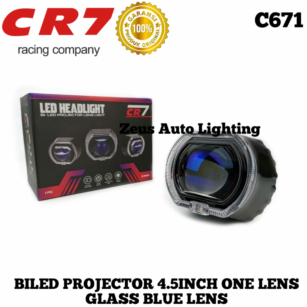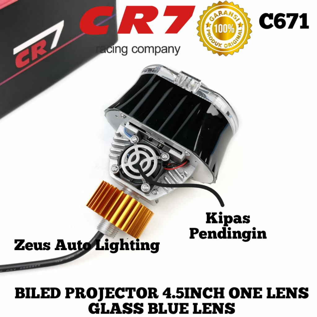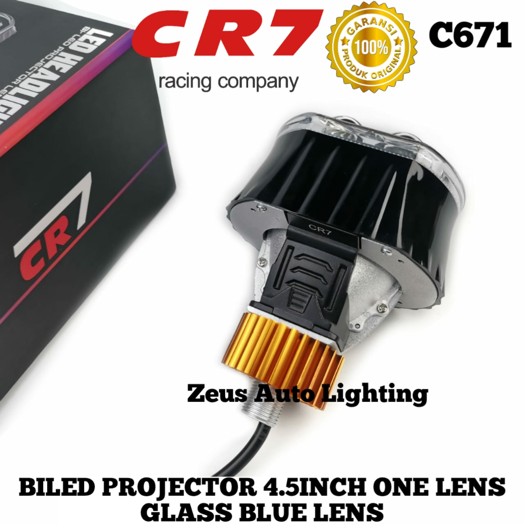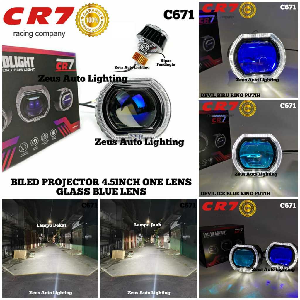 Biled Projector CR7 Type C671 4.5 Inch Blue Lens Plus Devil Shroud Dengan Kipas Pendingin High Low Flat Cut Ngedim Motor