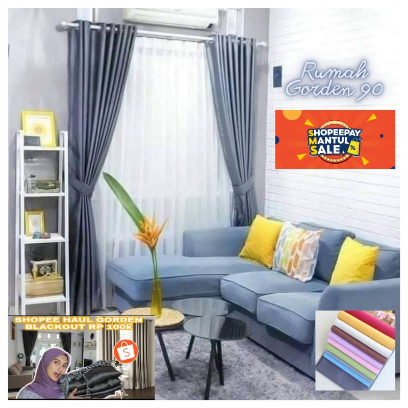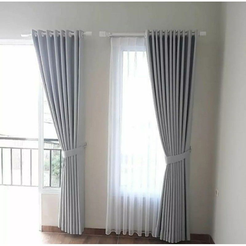 Gorden Jendela Dan Pintu Minimalis Kamar Aesthetic Bahan Blackout Polos Tebal Serat Safron Depan Doff Belakang Glossy Un