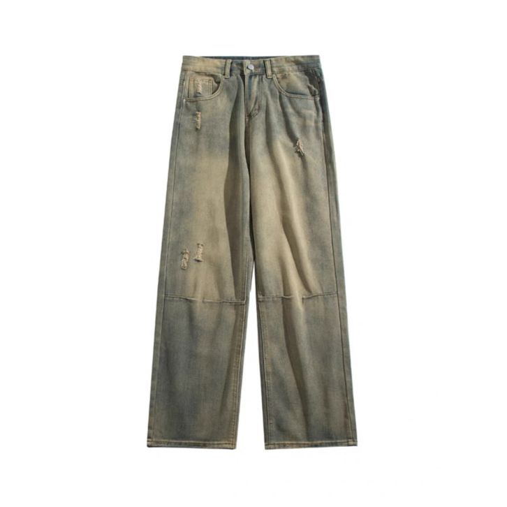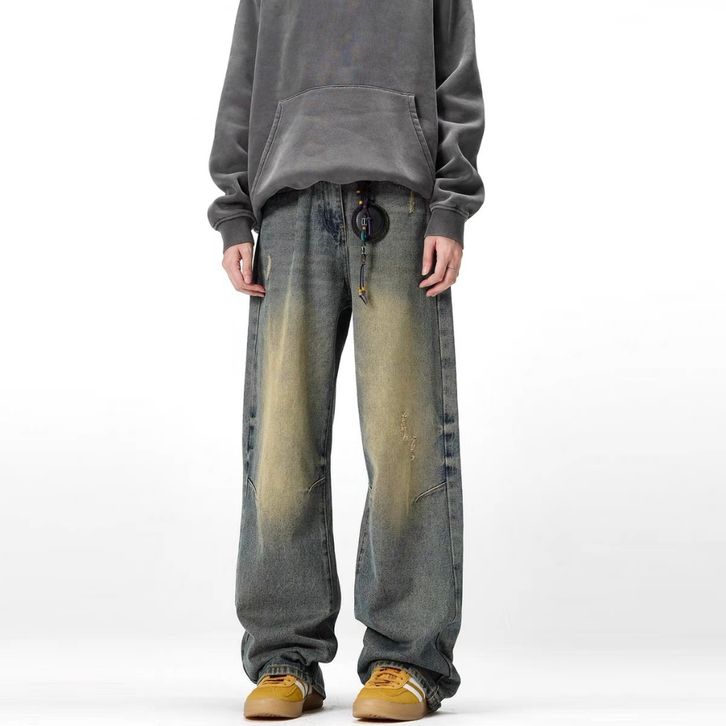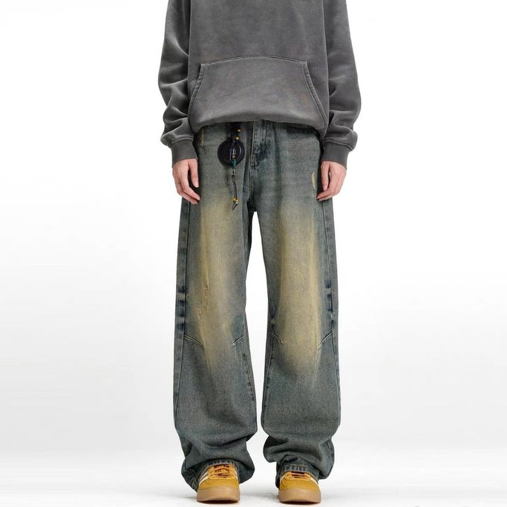 celana jeans pria sobek retro straight baggy pants panjang dewasa laki laki denim celana kulot casual korean