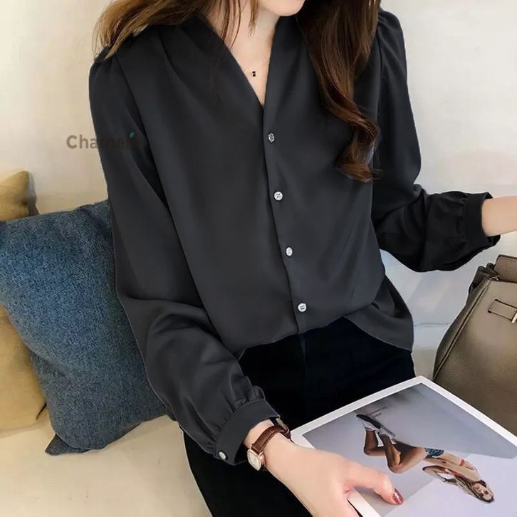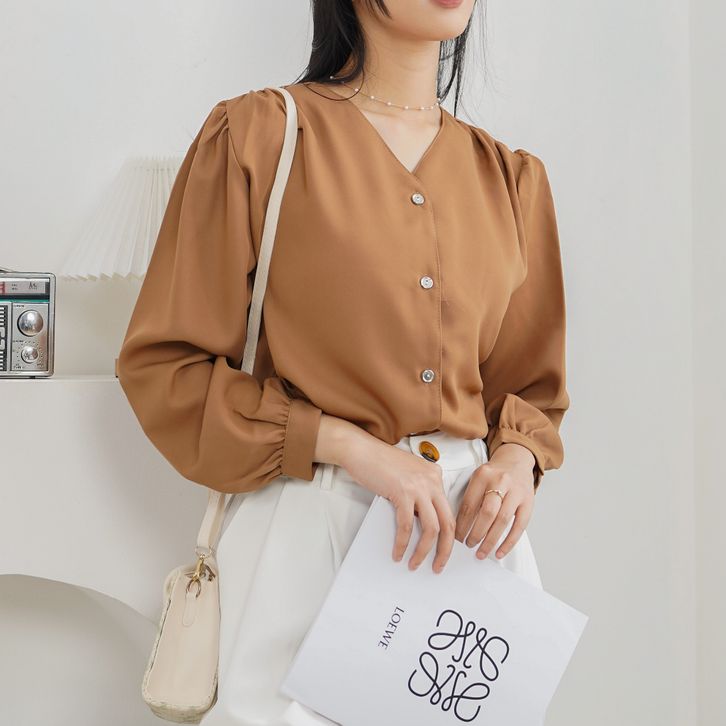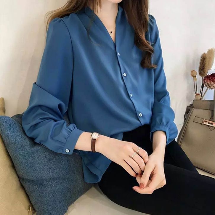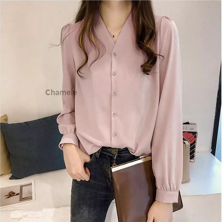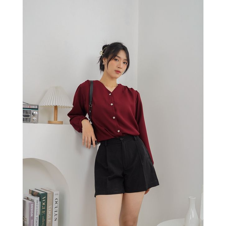NEW Darla Kemeja V neck wanita Polos basic lengan panjang PREMIUM 2362 ogach