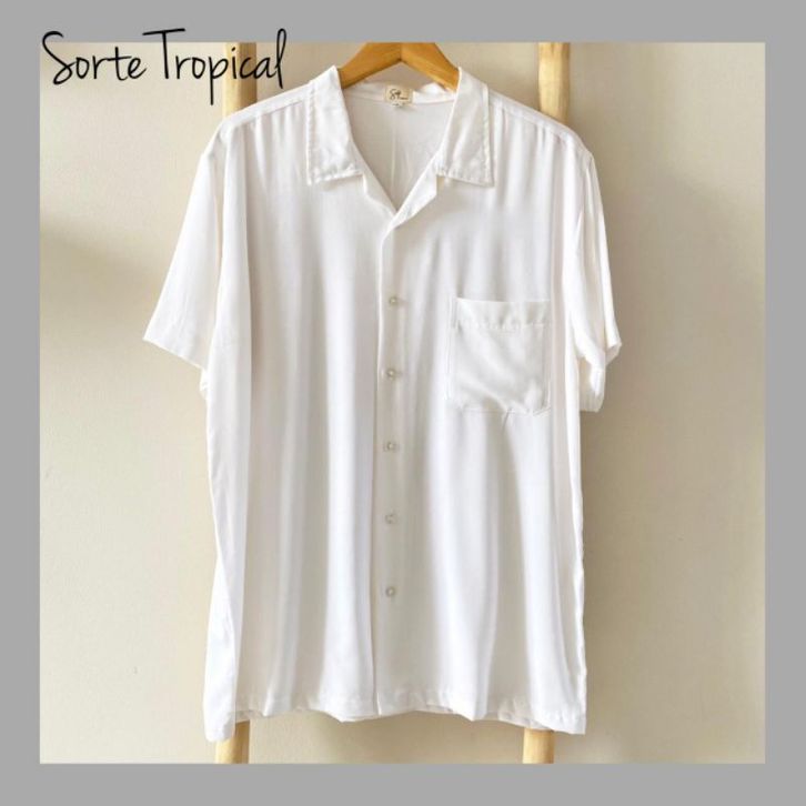GROSIR SORTE TROPICAL - Kemeja Pantai Hawai Unisex Kasual Rayon Polos Putih Natural egegl