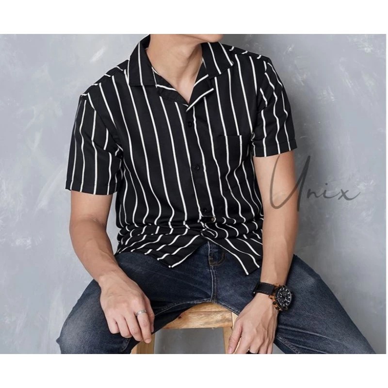 NEW HEM Salur Strip | Kemeja Salur Pria Pendek egisf