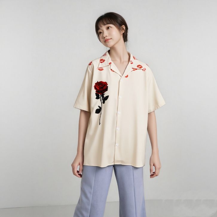COOLCOOL Elastic Fabric Digital Printing Does Not Fade Khaki Loose Short-sleeved Men's and Women's Casual Beach