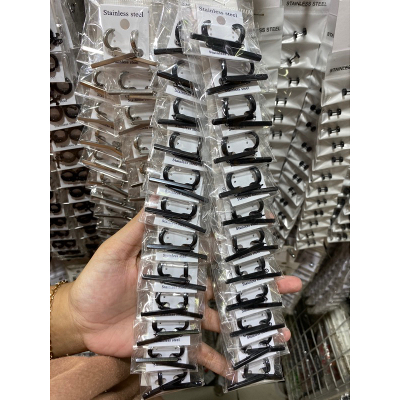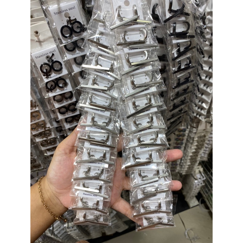 Grosirrrr Anting Cowok Tusuk Jurai Balok Silver Hitam Lusinan isi 12pc