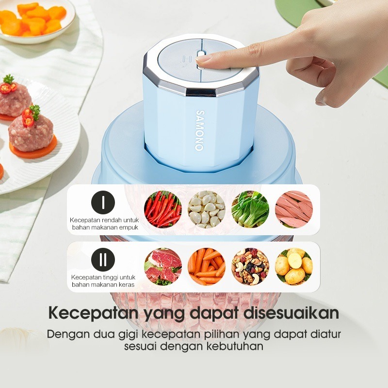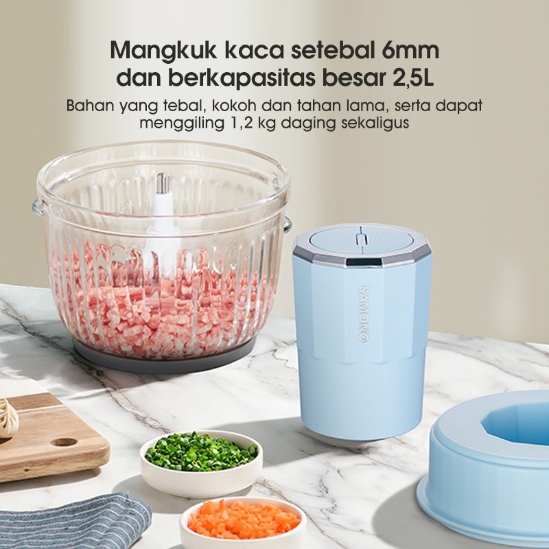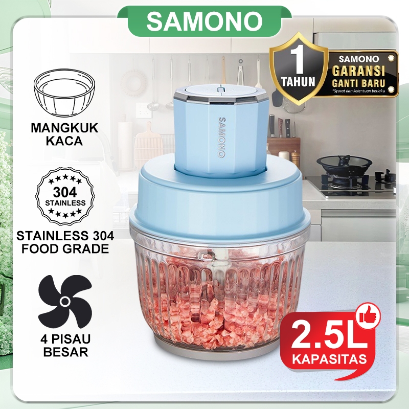 SAMONO Food Chopper Multifungsi Food Processor 2.5 Liter Daya Kuat Penggiling Daging Penghalus Makanan Garansi 1 Tahun S