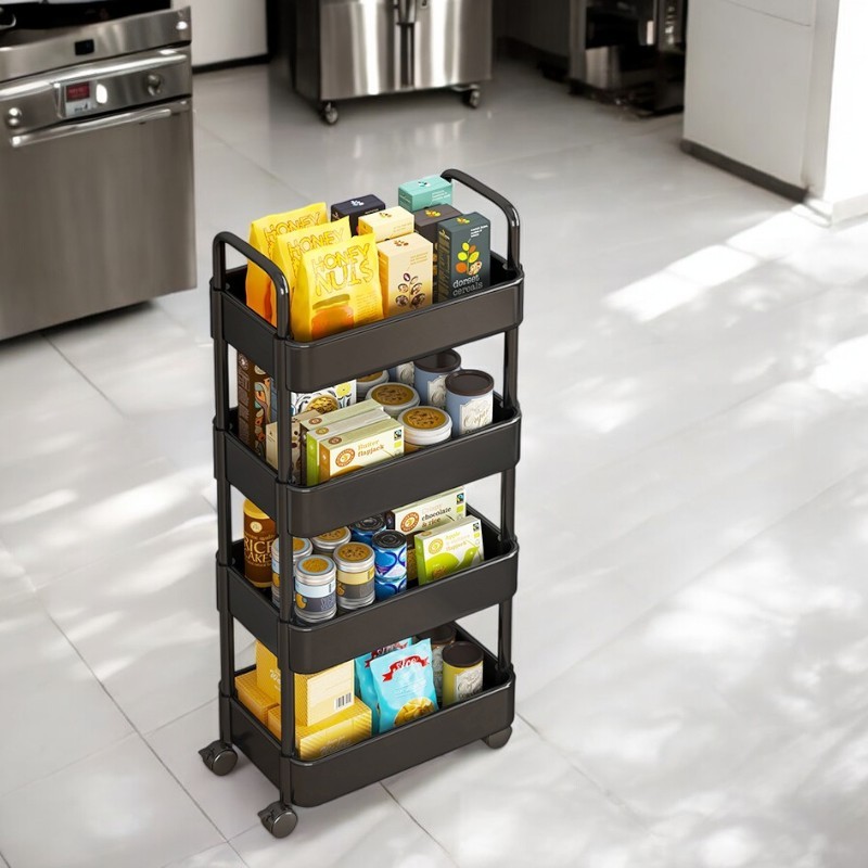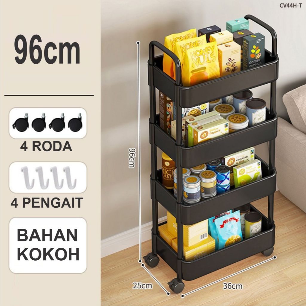 [berkah.unik] Rak Serbaguna dengan pegangan - Rak Troli 4 susun pegangan - Rak Serbaguna 4 Susun roda - Rak Dapur Serbag