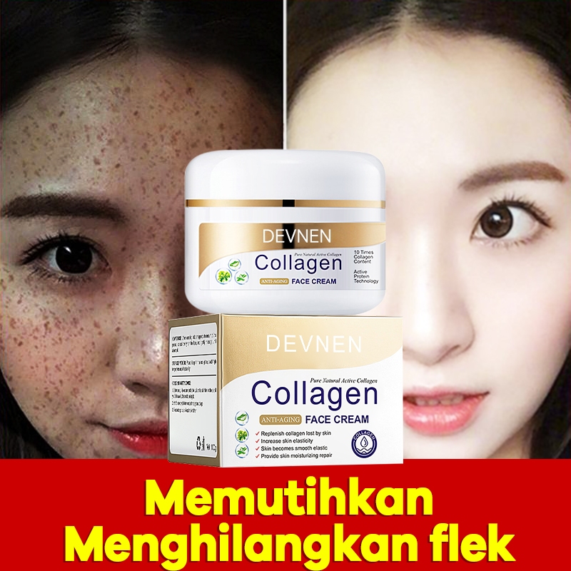 DEVNEN Collagen Cream Krim Pemutih Penghilang Flek Hitam Pemutih Alami Whitening Anti Aging Remove Melasma Perbaikan Ret