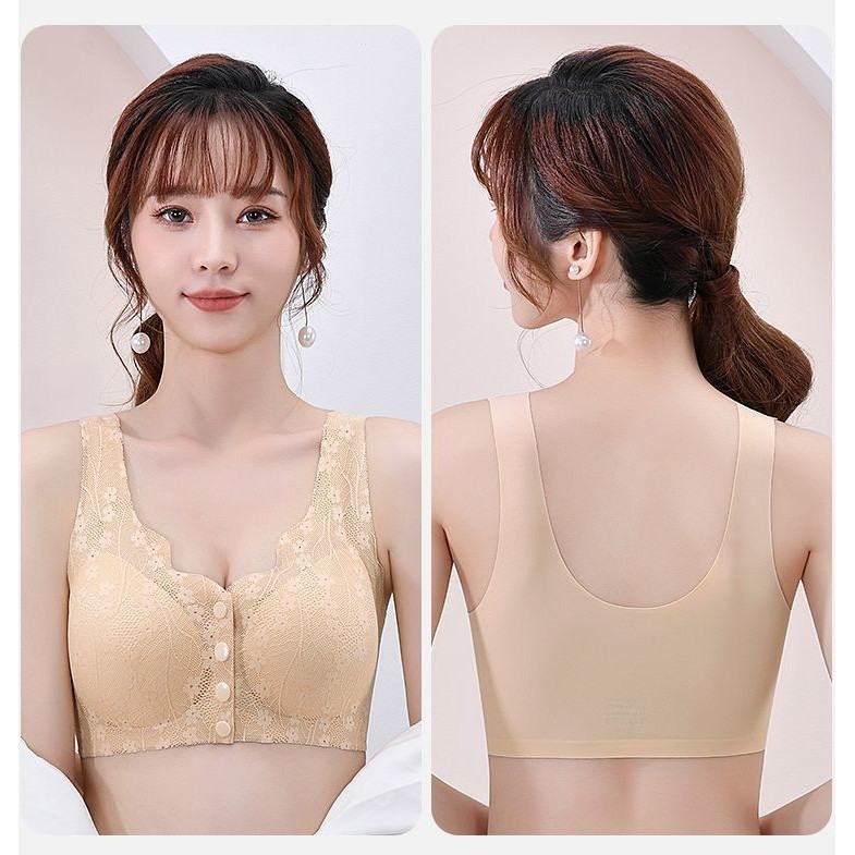 Bra Menyusui Rompi Renda Kancing Depan Pakaian Dalam Push Up Bra Wanita Sport Tanpa Kawat Busa BR01