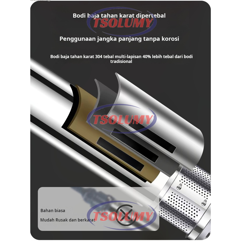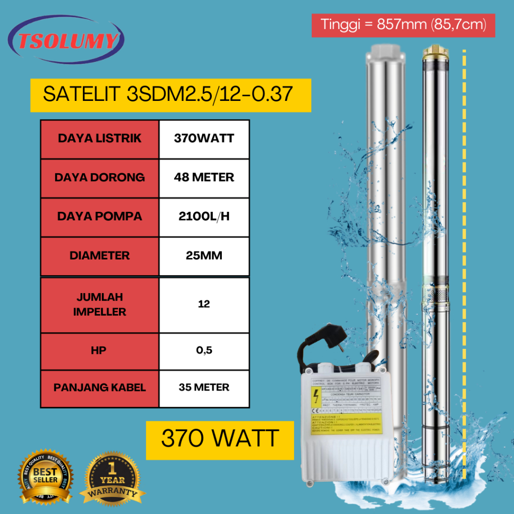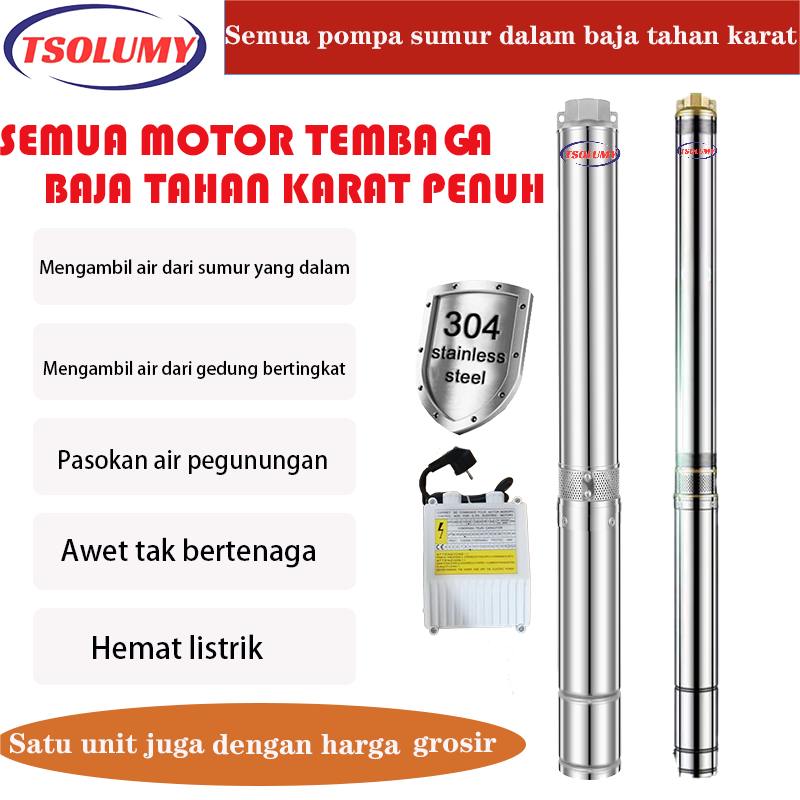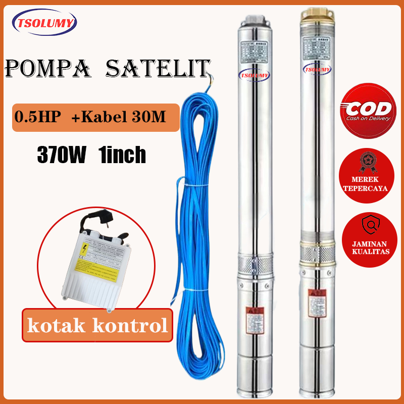 TSOLUMY Pompa satelit 3in 0.5HP 370Watt kabel 30M pompa Stainless Steel Pompa Air Celup Sumur
