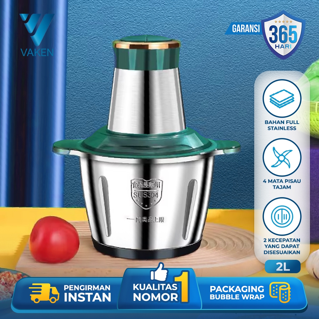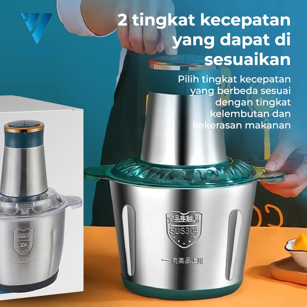 Vaken Chopper Daging Bumbu Halus Masak Stainless Hemat Daya 4 Mata Pisau Tajam Food Grade Garansi 1 Tahun