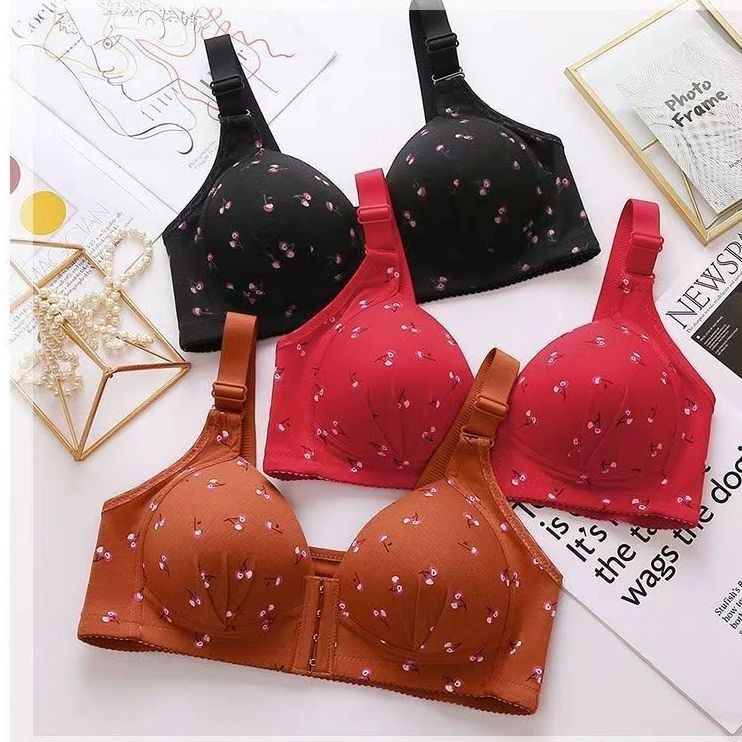 PINKYWORLD Bra Big Size Kaitan Depan Busa Tipis Tanpa Kawat Motif Bunga size 36-46