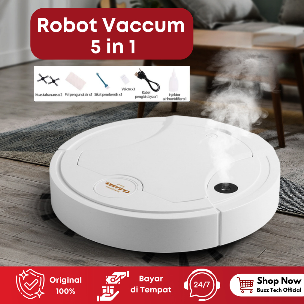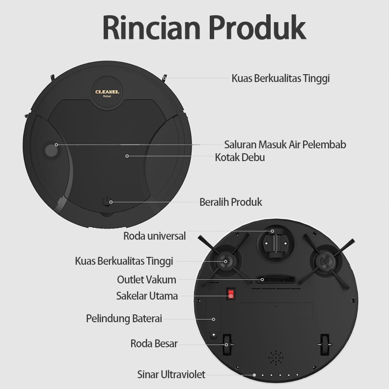 Robot Vacuum Cleaner 5 in 1 Portable Penyedot Debu Rumah Sapu Otomatis Robot Pembersih Lantai Humidifier/Sterilisasi UV