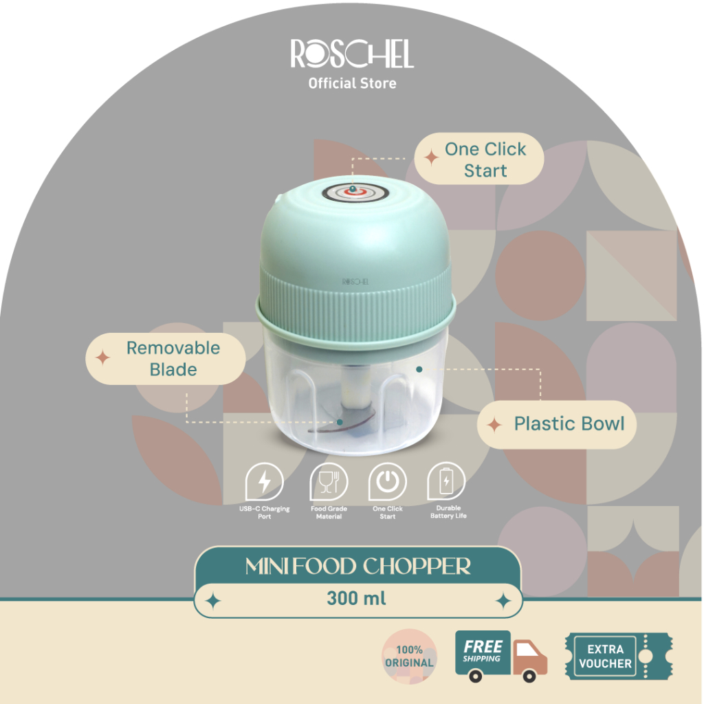 Roschel Mini Food Chopper Kaca 300ml Portable One-Touch With Safety Lock Food Grade Food Processor MPASI Multifungsi Ble