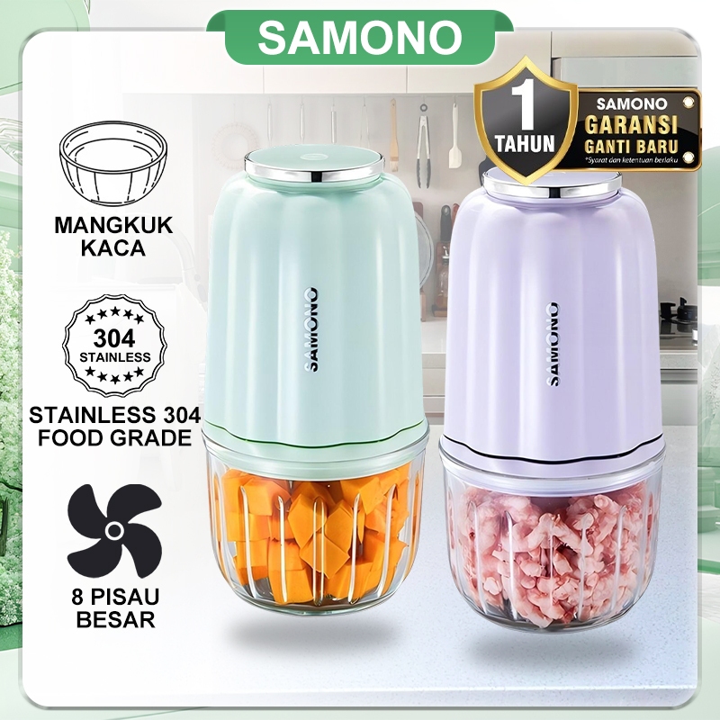 SAMONO New Food Chopper 300ml Wadah Kaca 8 Pisau SW-C150S Garansi 1 Tahun / Chopper Daging Dan Bumbu