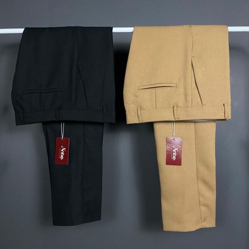 (Gratis Ongkir) ANBE - Celana Pria Formal Bahan Premium Hitam Slimfit