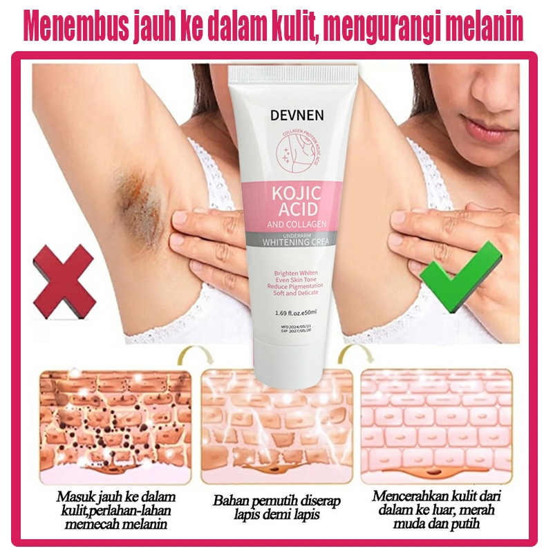 Krim Pemutih ketiak 50g KojicAcid Collagen Underarm Whitening Cream Miss V Pemutih Selangkangan Menghilangkan Melanin Pe