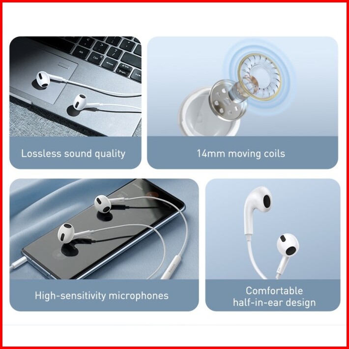 Baseus H17 Headset Earphone Stereo With Mic Jack Audio 3.5mm Earbuds