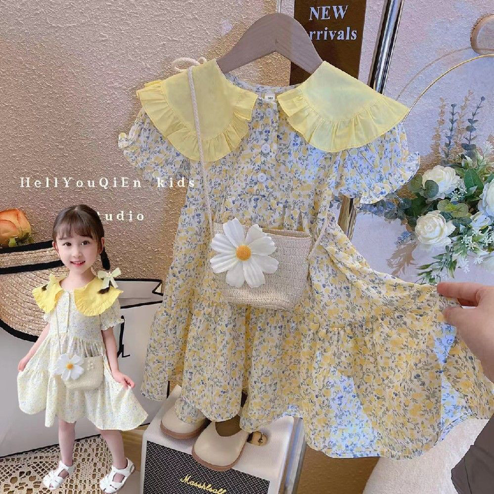 DRESS Haasya Kids Gaun Anak-anak untuk Usia 2-6 Tahun, Gaun Gaya Musim Panas, Gaun Bunga Anak Perempuan, Gaun Gaun Anak
